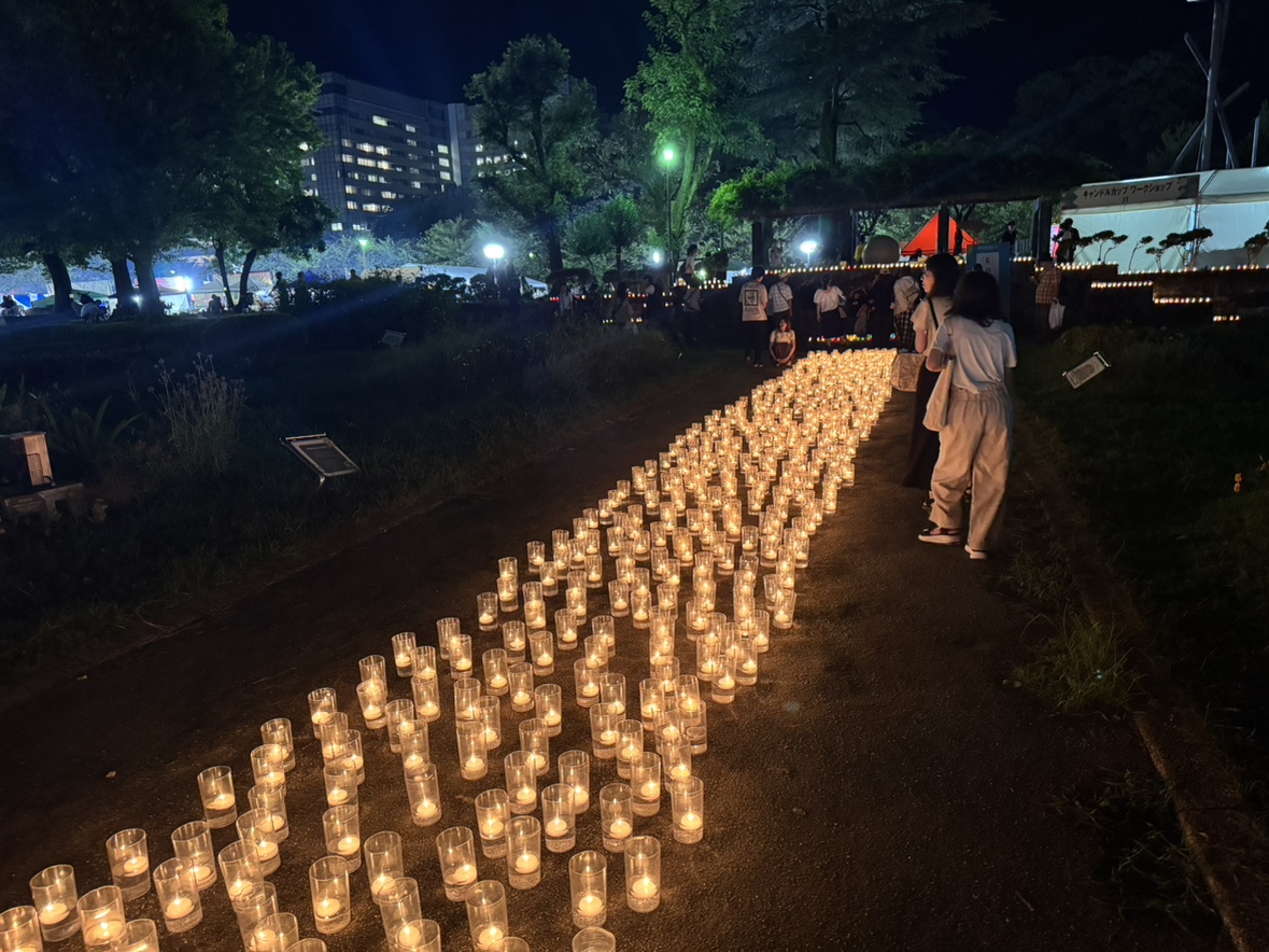 20日は京都に行っておりましたので、21日に。雨も降っていなく、夜の時間は過ごしやすい気温でした。ゲートをくぐると、屋台がたくさん並んでいて良い香り。